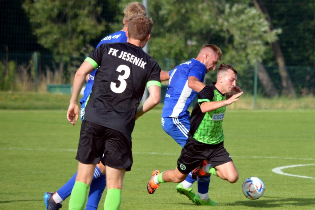 Jeseník: Vajda – Janíček, Cekuras, M. Planý (80. Červeňák), Ma. Bráblík, S. Planý (46. Kysela), Furik (71. Pechoušek), Cundrla, Krézek, Vaněk (71. Mi. Bráblík), Bouchal. Trenér: Libor Sláma.