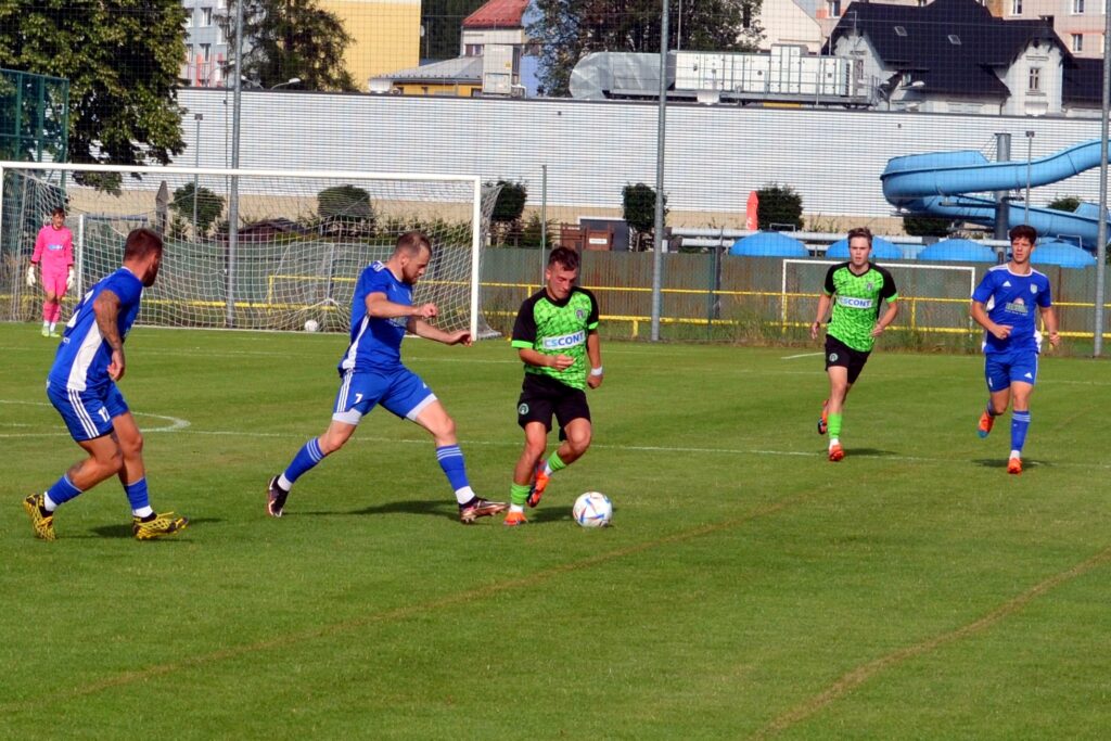 Z domácích se neprosadil lobem v samostatném úniku Krézek. Furik následně z dvaceti metrů trefil břevno. A tak ještě v první půli Šumperk dvakrát udeřil. O oba góly se postaral Evžen Ostrovka.
