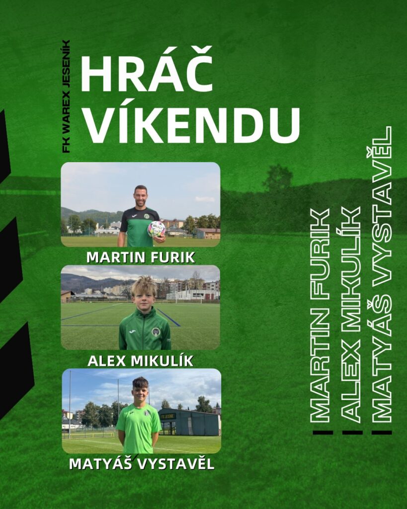 Další kolo naší ankety Hráč víkendu nabízí k hlasování tuto novou trojici borců FK WAREX Jeseník.