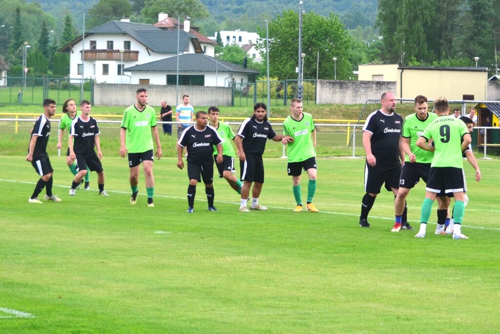 Jeseník hrál v kombinované sestavě s dorostenci, ale hlavně s jediným náhradníkem, kterým byl druhý gólman Červenka – připravený do pole. Když se pak ve 30. minutě zranil Vavrač, naběhl „Červ“ na hrot útoku a v druhém poločase se také zapsal mezi střelce. Nepříjemné zranění utrpěl v bernartické sestavě i gólman a rovněž musel střídat. Když dal Jeseník brzy po přestávce díky Planého individuální akci gól na 3:1 a o minutu později proměnil stejný hráč penaltu po faulu na Břízu, bylo o osudu utkání definitivně rozhodnuto. Jeseník do konce utkání přidal ještě tři góly a po výhře 7:1 se stal celkovým vítězem okresní ligy.