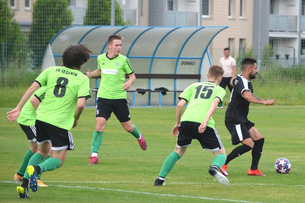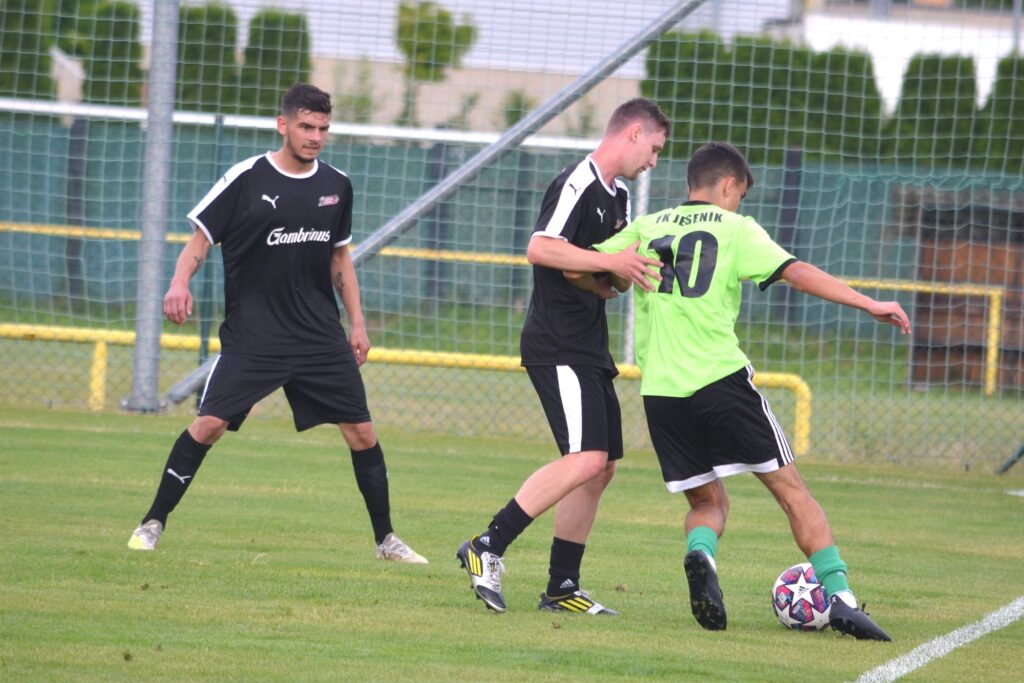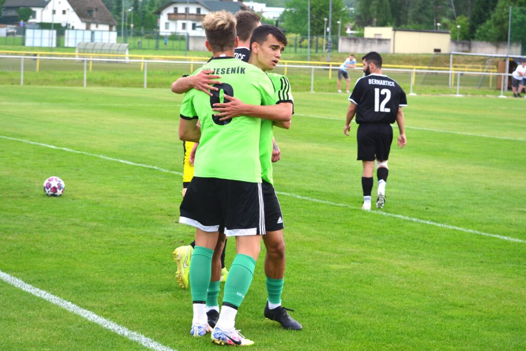 Jeseník – Bernartice 7 : 1 (2:1), branky: Bříza 2, Planý 2, Červeňák, Zrník, Červenka.