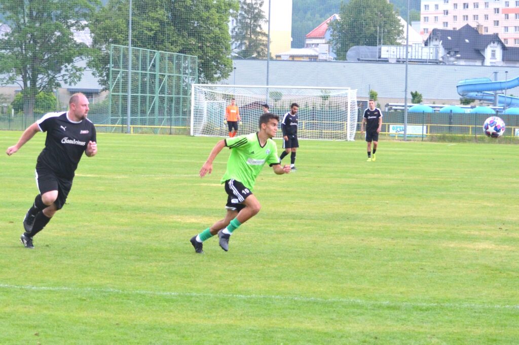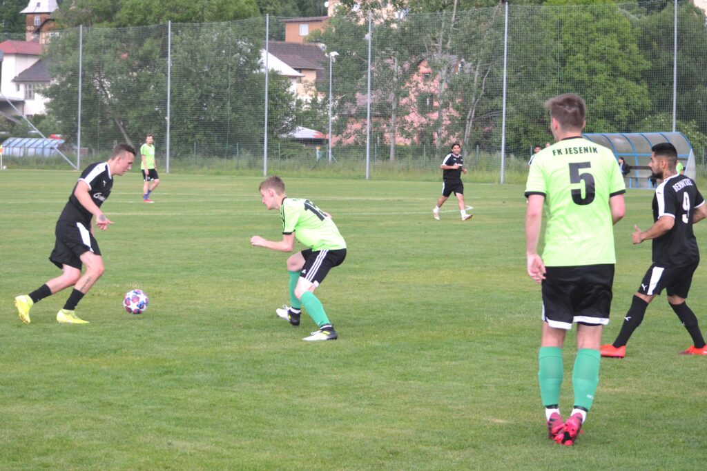 Bernartice přijely hrát rychlý útočný fotbal a v prvním poločase bylo všechno otevřené. Skóre sice otevřel domácí Červeňák, ale brzy vyrovnal střelou zpoza šestnáctky Žiga. Ještě do přestávky vrátil vedení Jeseníku Bříza, který byl na konci krásné kombinační akce.